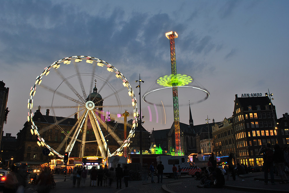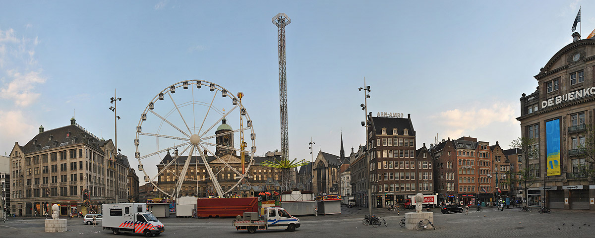noční náměstí Dam   ranní náměstí Dam