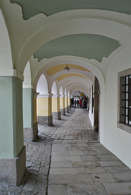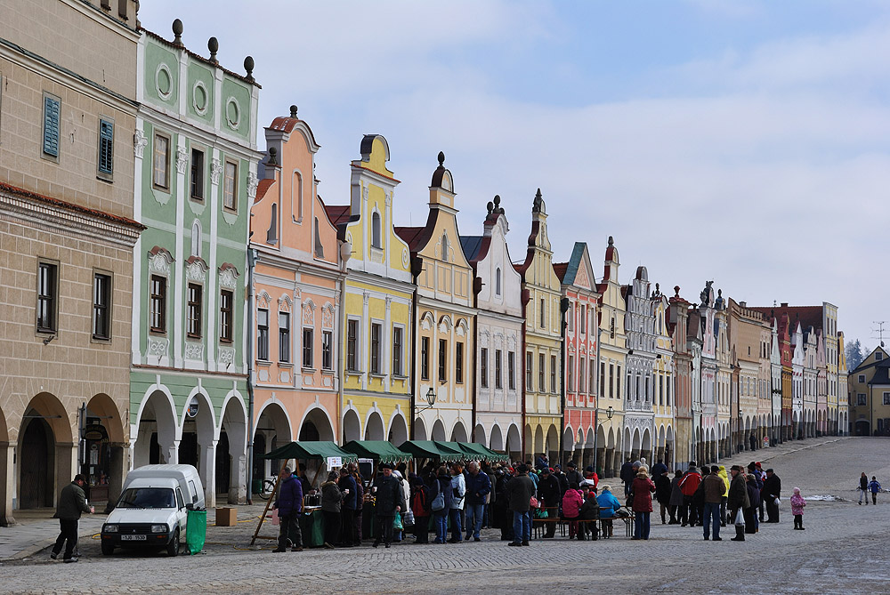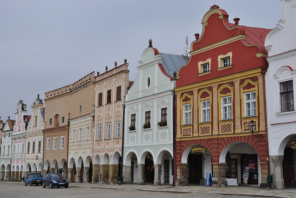 náměstí Zachariáše z Hradce Dolní neboli Malá brána telčské podloubí náměstí lemované malebnými domy