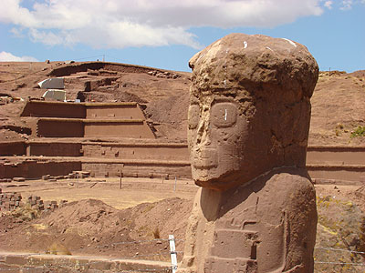 Monolit El Fraile (kněz) vypadá dost tajemně a pochází zřejmě z období Tiahuanaco IV. (300-700 n.l.). Celá staletí stojí nehybně na kamenné plošině Kalasasaya a za zády má zbytky 16m vysoké pyramidy Akapana.