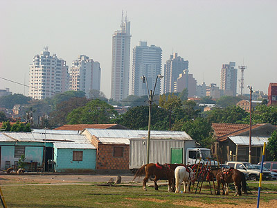 V Asuncionu jsou občas k vidění i docela zajímavé kontrasty. Břeh řeky Paraguay bezprostředně pod vládními paláci lemuje chudinská čtvrť, v centru města jsou však k vidění i nějaké ty mrakodrapy.