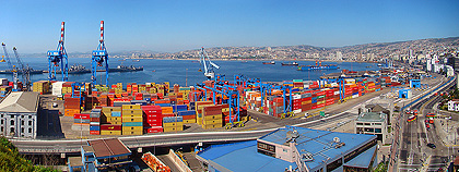 přístav ve Valparaisu, v pozadí sousední město Viňa del Mar