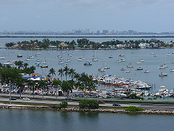 výhled na Miami Beach z Dodge Island |
