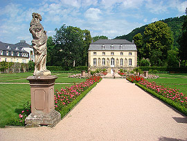 Echternach - zahrada v areálu opatství bazilika sv.Willibrorda radnice v Echternachu