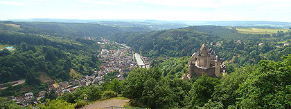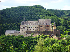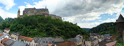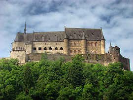 Vianden je vedle Luxembourgu nejdůležitějším turistickým místem Lucemburska. Dominantou městečka s 1600 obyvateli je totiž středověký hrad, který se tyčí na skalním ostrohu nad malebnou říčkou Our. Nejstarší části hradu pocházejí z 11.století a stojí na místě původní mnohem starší římské pevnosti. Ve 12.století byl hrad sídlem hraběcího rodu Viandenů, kteří o svou rezidenci přišli v roce 1264 v dědickém sporu s Lucemburgy. Ti zde poté sídlili až do roku 1417 a pro nás Čechy není bez zajímavosti, že se právě ve Viandenu 10.srpna 1296 narodil český král Jan Lucemburský! V roce 1417 hrad připadl dynastii Nassau, která jej však již jako rezidenci nevyužívala. V roce 1820 hrad prodal král William I. místnímu obchodníku, který většinu hradního invetáře rozprodal. To co zbylo postupně chátralo a teprve když bylo vlastnictví hradu převedeno na vládnoucí lucemburskou Velkovévodskou rodinu, byla zahájena dloudobá nákladná rekonstrukce. Bohužel jak se mohou návštěvníci hradu přesvědčit, probíhá tato rekonstrukce místy dost necitlivě, nicméně hrad je znovu po dlouhé době nepřehlédnutelnou malebnou dominantou údolí řeky Our. Vstupné do hradu dnes činí 5,5 Euro.